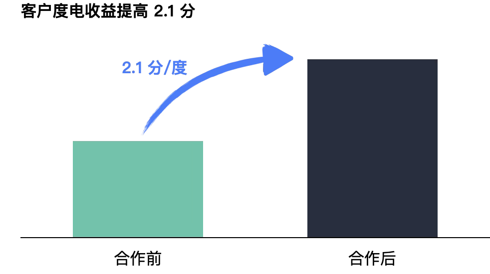 双方合作后,该客户收益水平显著提高,度电收益提高2.1分。其中月内交易度电收益4.5厘,日前收益2.58厘,其他收益来自月度竞价及绿电。